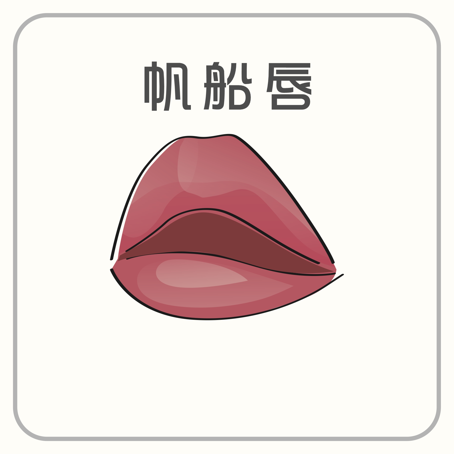 上唇外緣緊收,唇峰偏厚,嘴唇向中間聚攏,像月牙一樣。唇形略薄