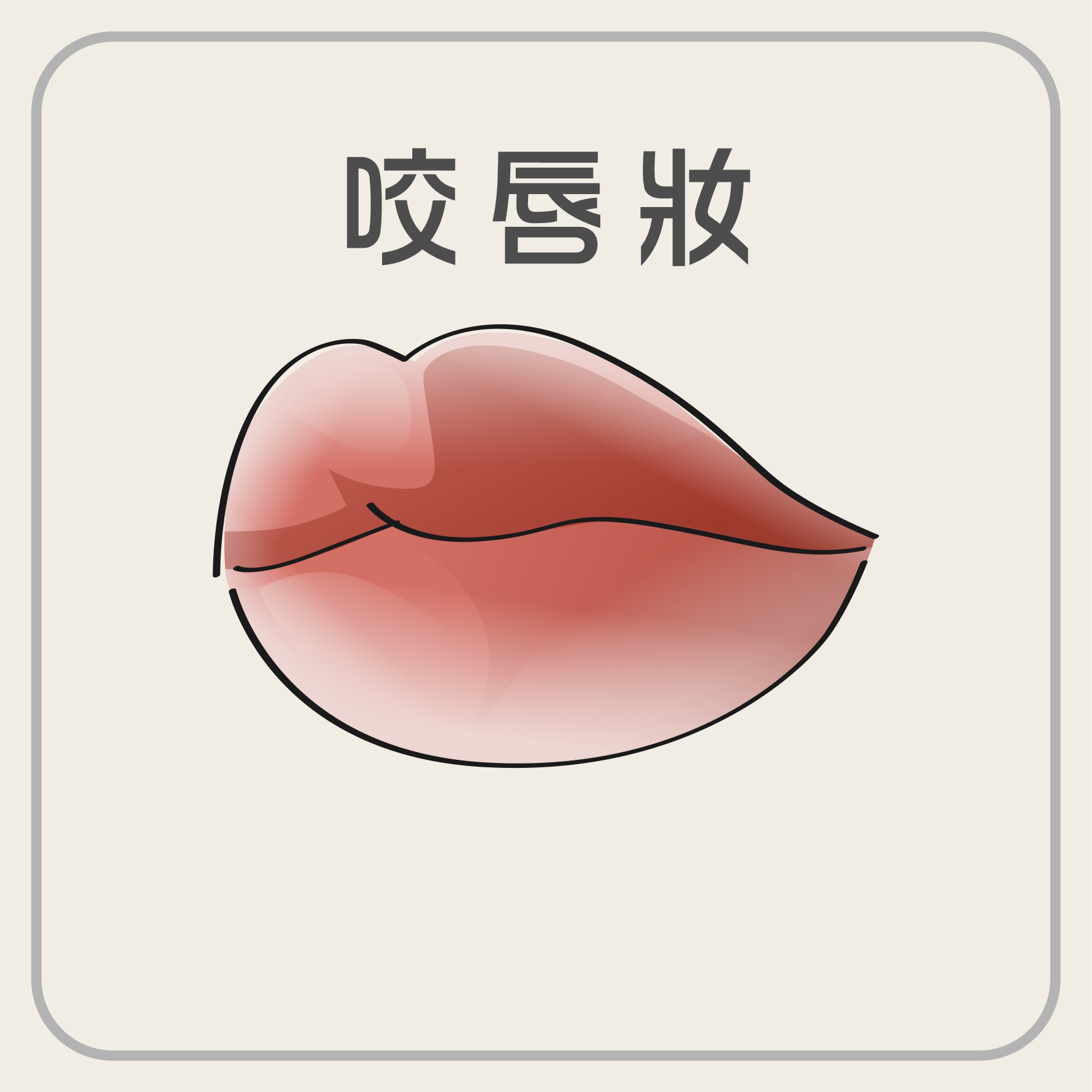也稱漸層唇。受韓流影響,追求自然唇型,唇色內深外淺,呈現咬唇擊漸層效果。