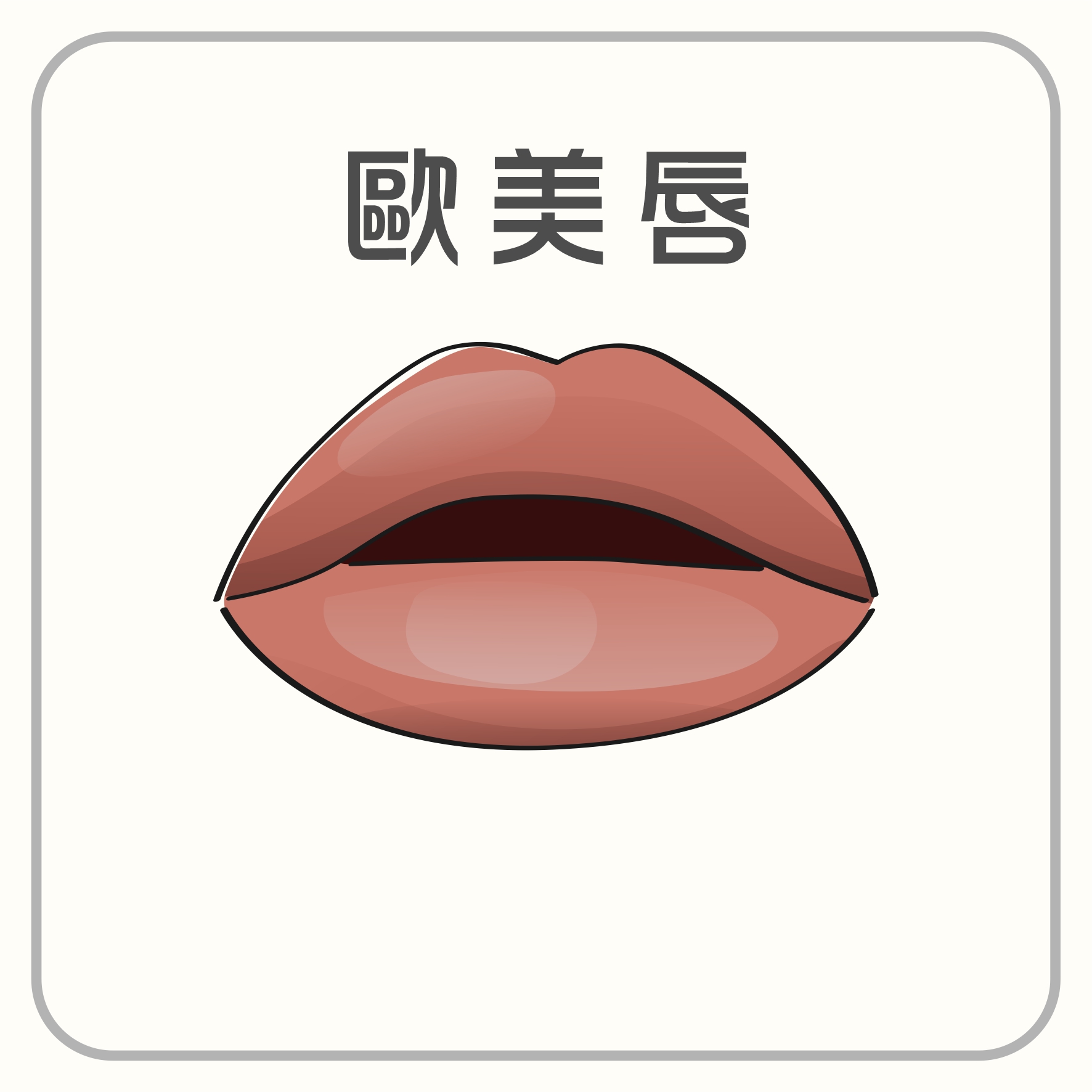 有豐滿的上唇和下唇,整體輪廓清晰,下唇略像臀部。